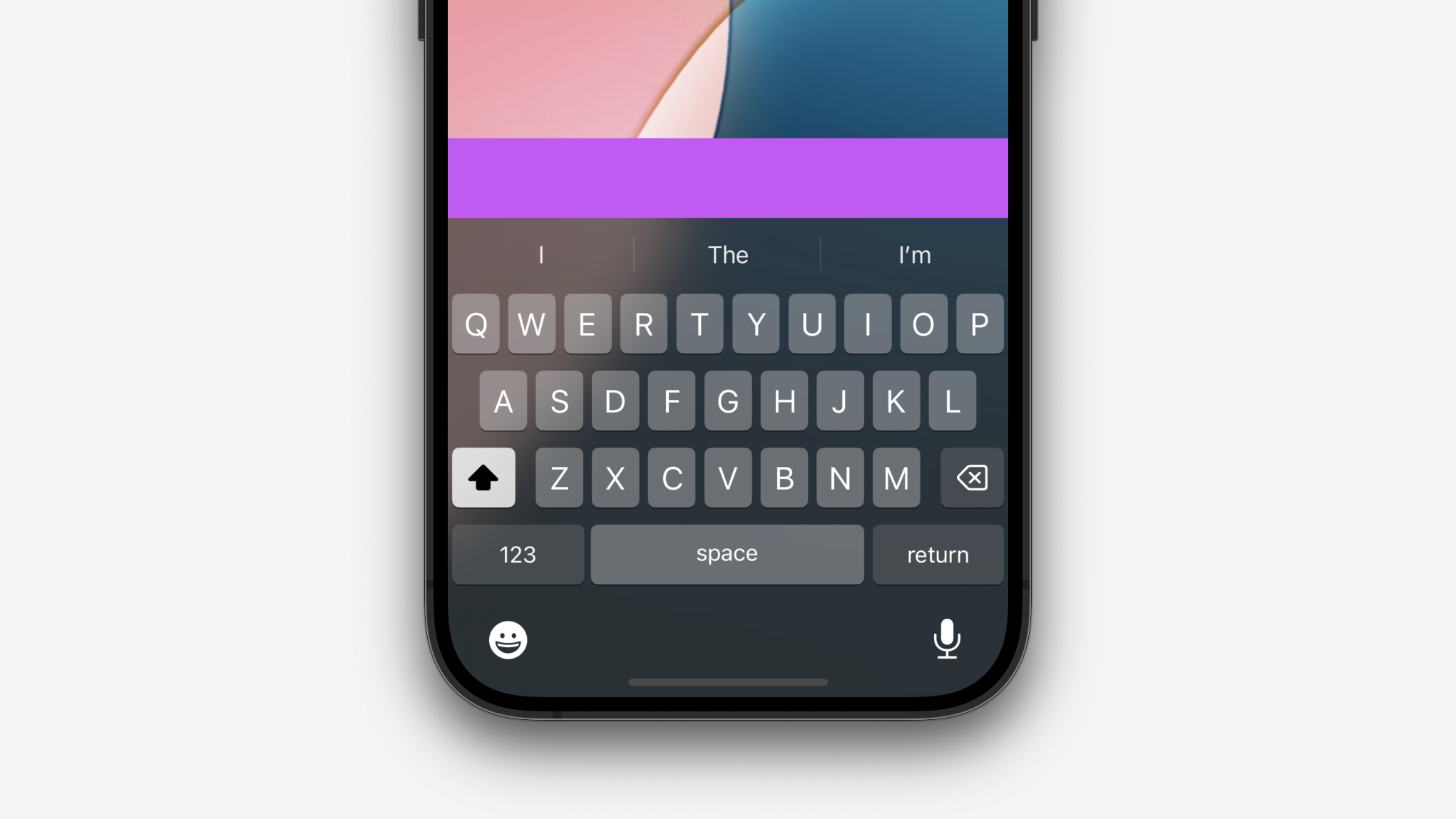 Whenever this view controller is on screen, and the keyboard appears, a purple view, 56 points tall, will sit above the keyboard. The best part is, UIKit manages this view entirely for us! We don't have to worry about it's position, animating it on and off screen, the framework gives us this for free.