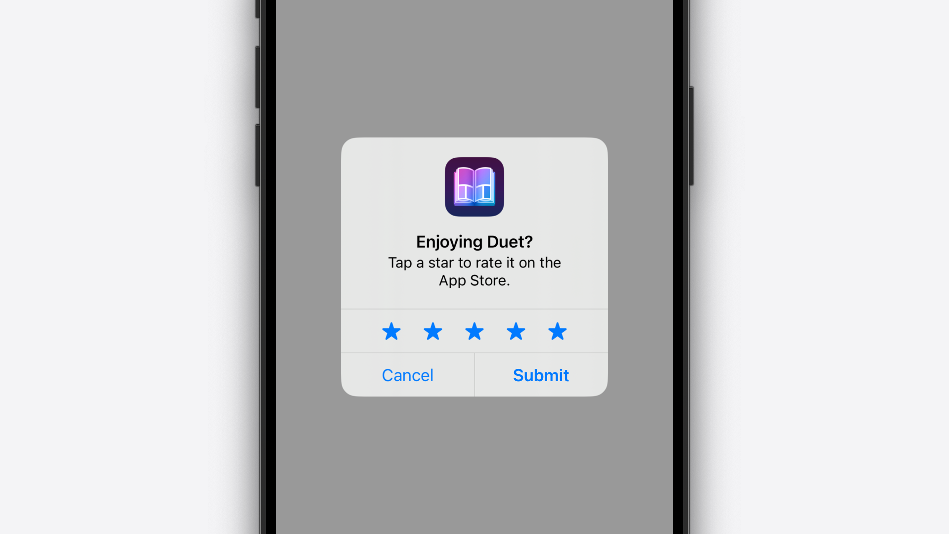 The first API we're going to dive into is -[UIAlertController _headerContentViewController] and its corresponding -[UIAlertController _setHeaderContentViewController] method. These APIs do exactly what they say on the tin, they let you get and set the header content view controller. This is how Apple shows your app icon in StoreKit's review request alert.